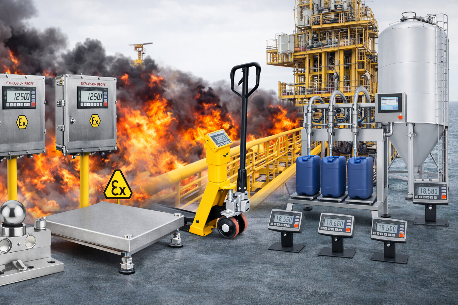 ExprooF Yanmaz Terazi, yanıcı ve tehlikeli endüstriyel ortamlarda güvenli tartım sağlar. ATEX ve IECEx standartlarına uygun tasarımı ile maksimum güvenlik sunar. Yüksek hassasiyeti, dayanıklı yapısı ve dijital entegrasyon seçenekleri ile kimya, boya, laboratuvar ve lojistik gibi birçok sektörde kullanılır. Hem güvenliği hem de performansı öncelikleyen işletmeler için ideal bir çözümdür.